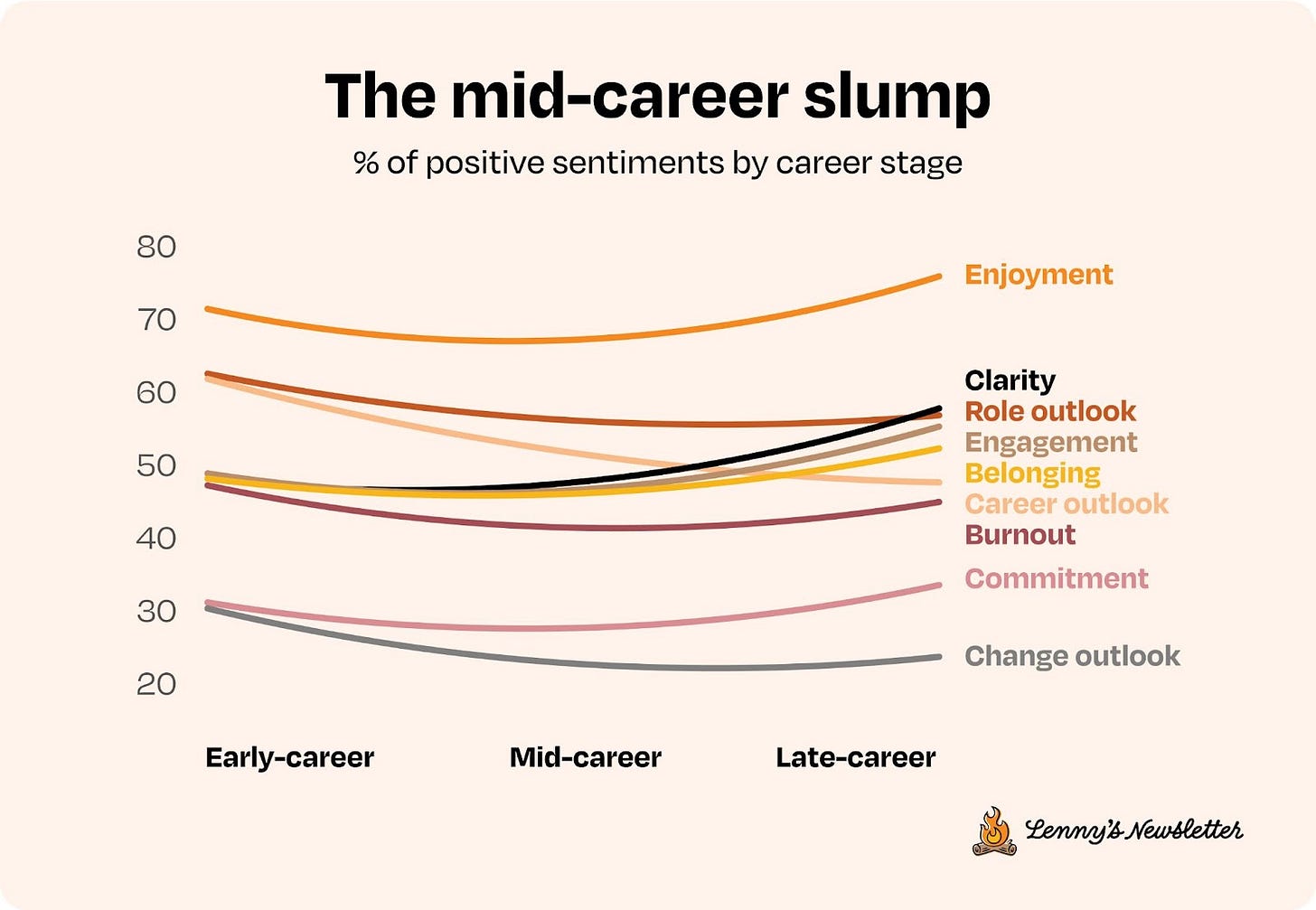 Last month, Lenny's Newsletter dropped a comprehensive survey of tech worker sentiment, covering over 8,000 people across the industry. The findings? Most tech workers are cautiously optimistic about their careers. Even with AI breathing down their necks, 55% are positive about their career prospects (33% are negative). But that sentiment is headed down: 51% grew more pessimistic over the last year.