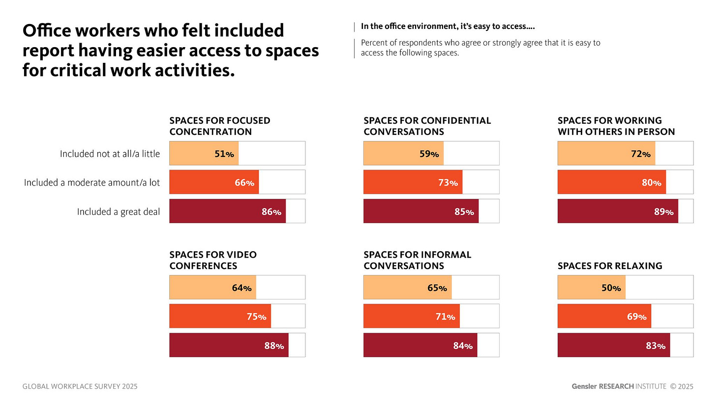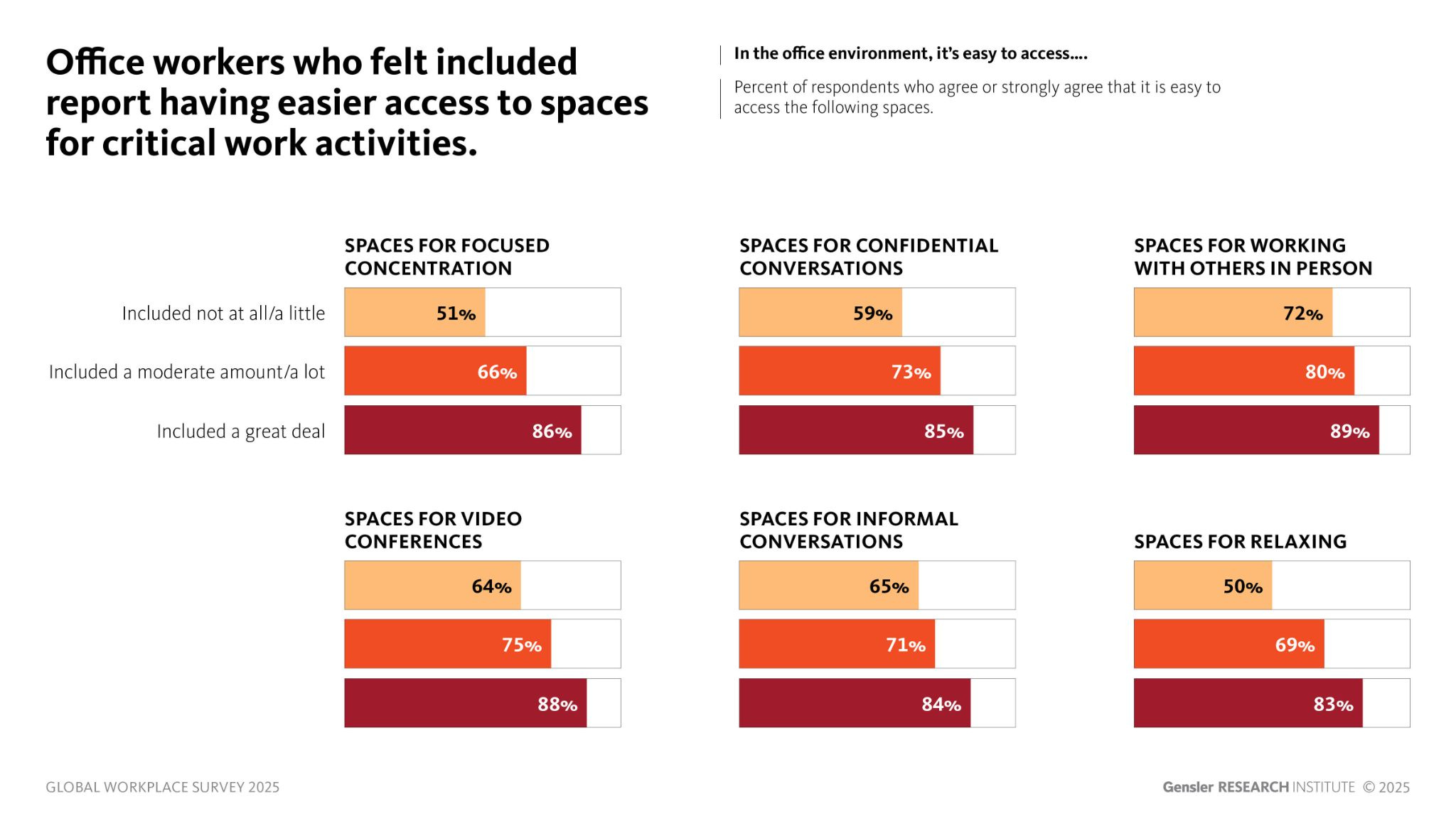 Gensler found that only 21% of workers felt "greatly included" in recent office updates. But those who were involved showed dramatically better outcomes:
